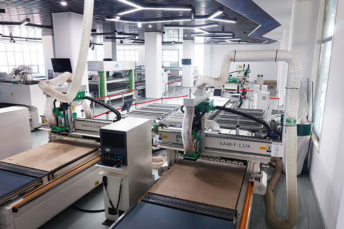 1,中控系統(tǒng)具備開料優(yōu)化功能,節(jié)省時間和減少板材浪費,同時具備現(xiàn)場補(bǔ)板功能,無需因補(bǔ)板重新做文件導(dǎo)入數(shù)據(jù),8小時加工量達(dá)到240張左右。