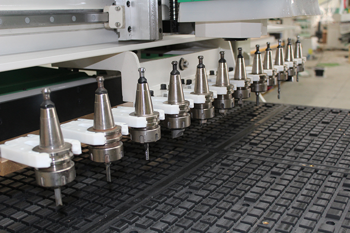 直排鉆包加工中心,是一款既能夠?qū)崿F(xiàn)定制家具生產(chǎn)又能實現(xiàn)櫥柜門板銑形、雕刻的數(shù)控設備,機器搭配的自動換刀主軸,能夠進行高速切割和門形雕刻,搭配的9垂直排鉆組能夠快速鉆孔,提高定制家具的生產(chǎn)效率。此款機型性價比高,復合加工能力強,是絕大部分家具廠首選機型。